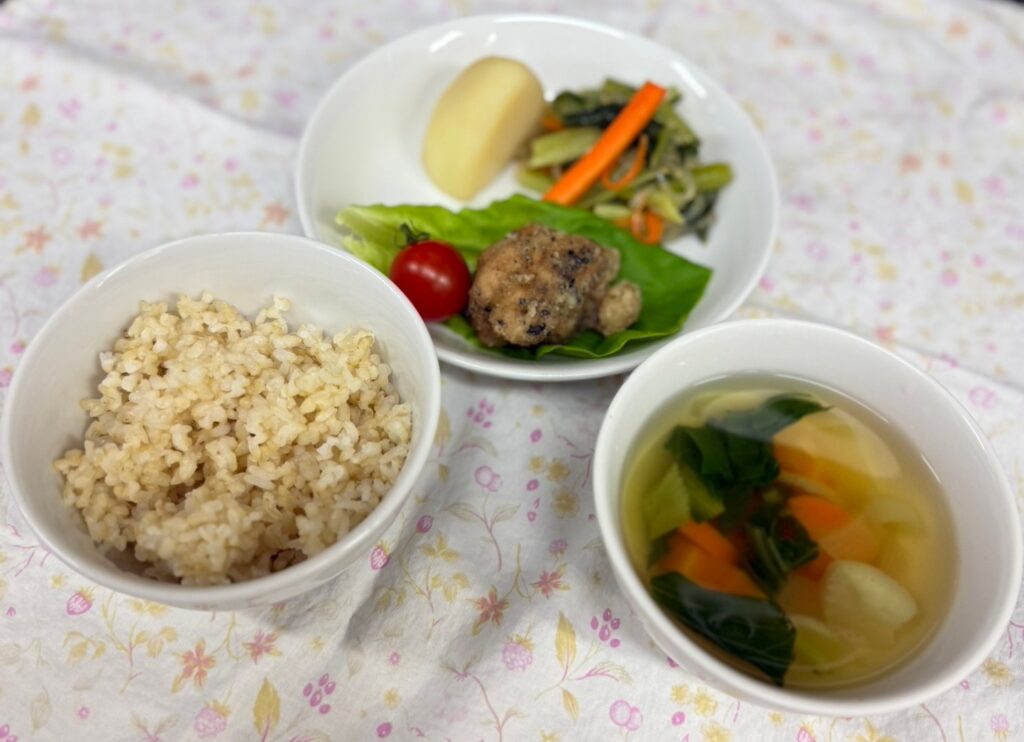 どのお子さんも同じように給食が食べられるよう、できるだけ小麦を控え、卵と牛乳を使用しない点にこだわった給食が提供されています。